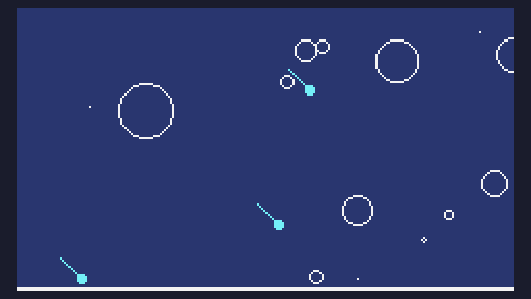 Bubbles grow when they collide with each other and pop into smaller bubbles when they hit a pin